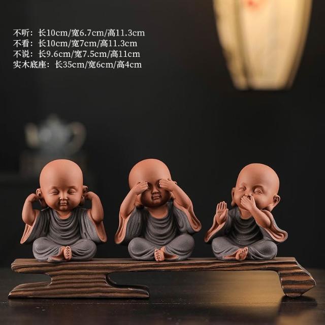免運 栩栩如生 新中式紫砂禪意四不小和尚 茶寵擺件 博古架 茶臺桌面可愛小沙彌擺設