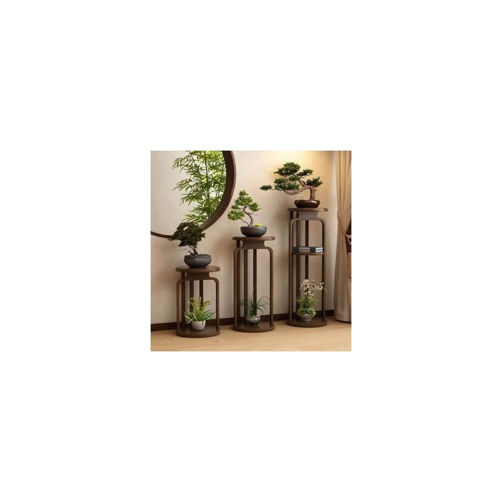 中式圓形花台陽臺花架置物架實木花盆架子客廳落地圓形花架子圓形