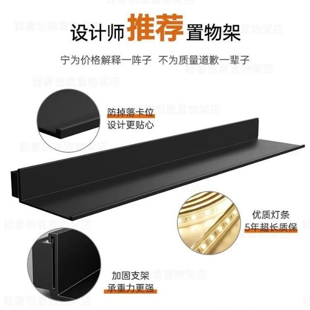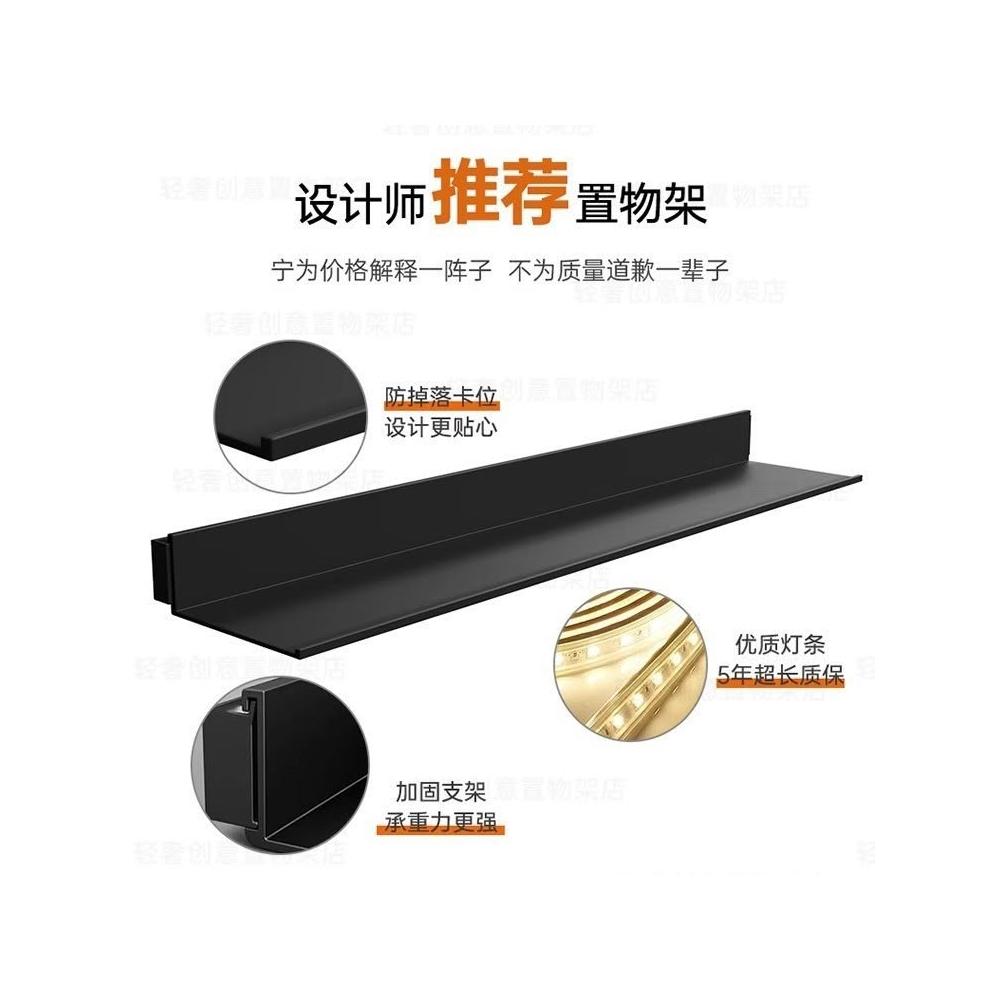鋁合金LED發光金屬層板簡約現代帶燈牆上擱板置物架一字展示隔板