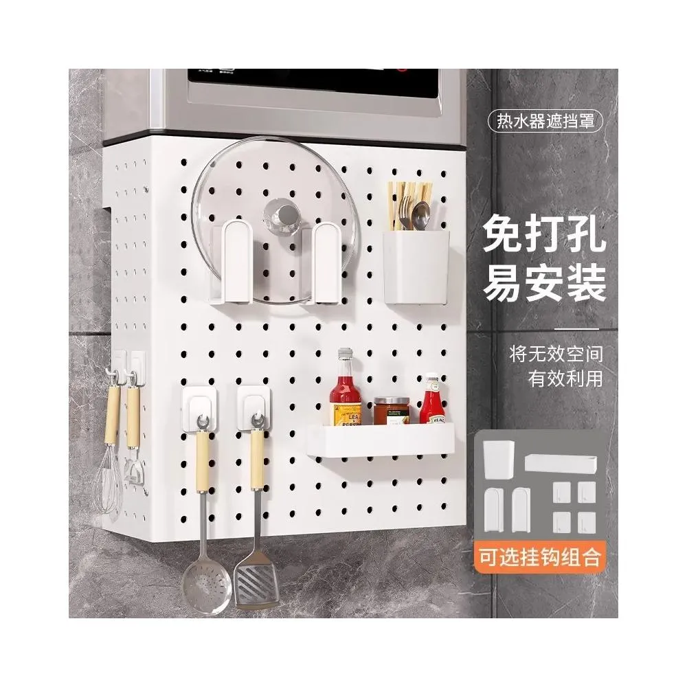廚房用洞洞板置物架燃氣管熱水器遮醜擋板免打孔壁掛式管線遮擋罩