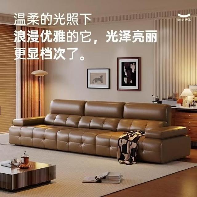 全網熱銷 勞倫斯生態真皮沙發奢華享高靠背設計適配平層別墅大戶型輕奢之選