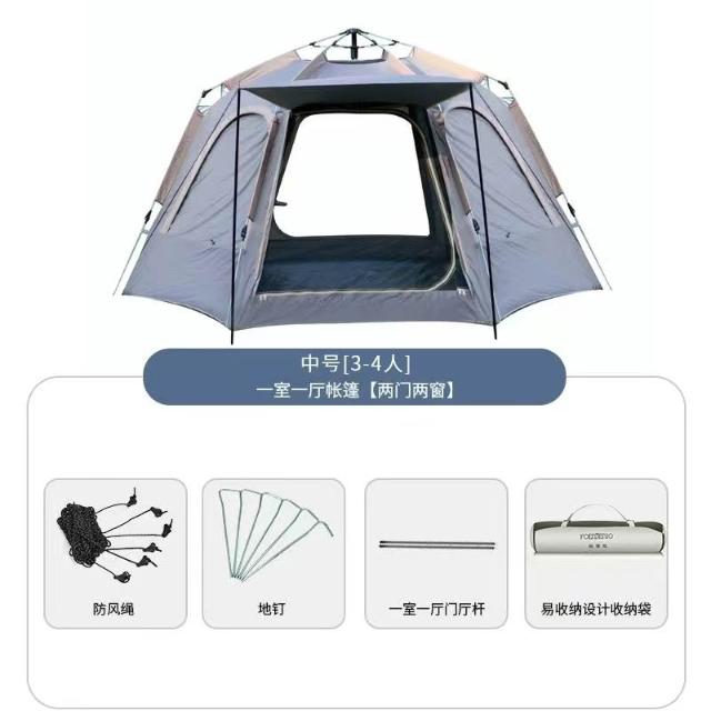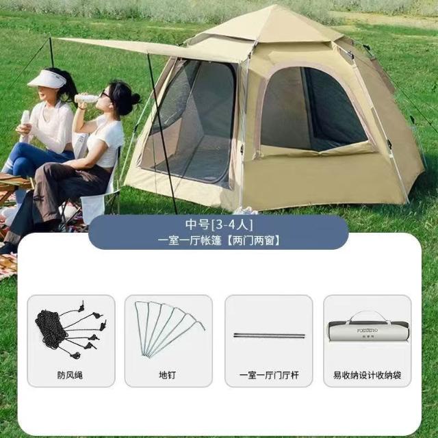 帳篷戶外露營全自動速開防水可攜式防風帳篷雙門帶杆彈出式帳篷