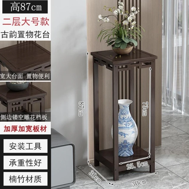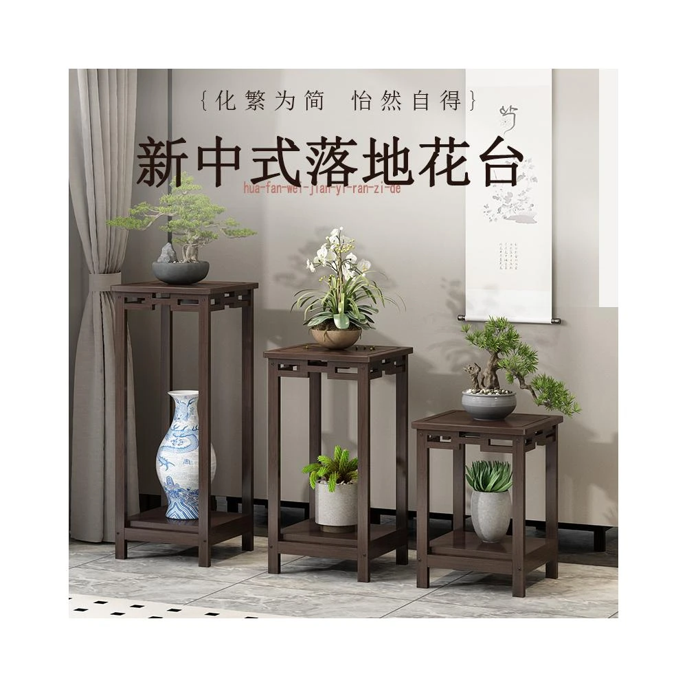 新中式花架子 室內家用客廳陽臺玄關落地式復古花台 多層花盆置物架 綠植架
