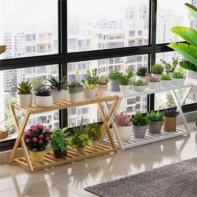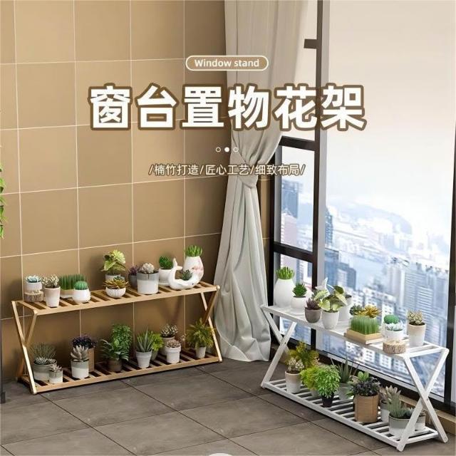 花架子 室內陽臺多肉植物花盆架 現代客廳落地式多層階梯楠竹置物架