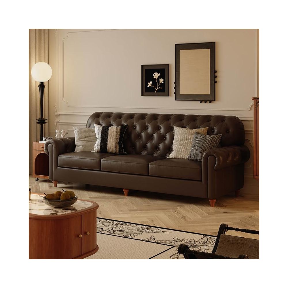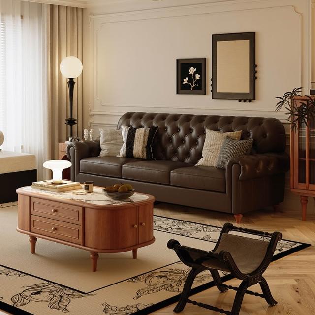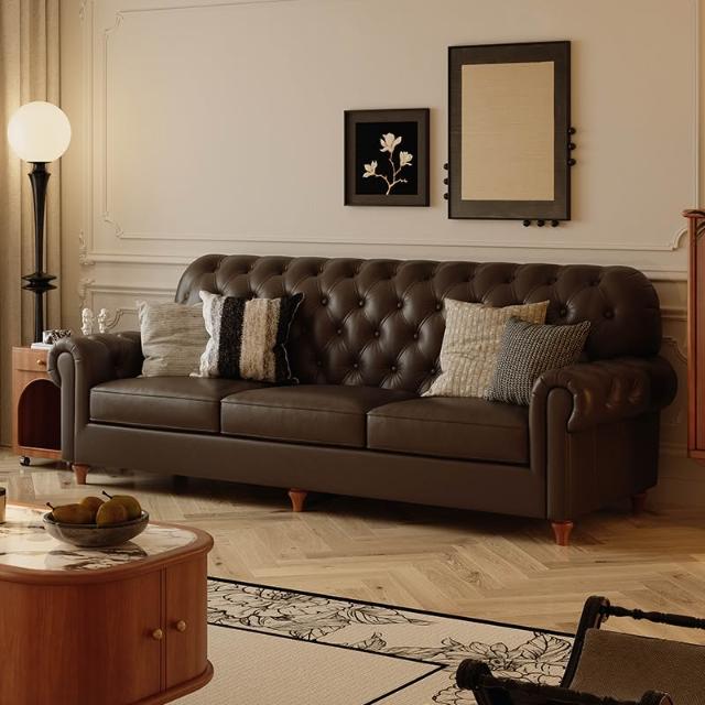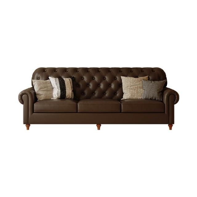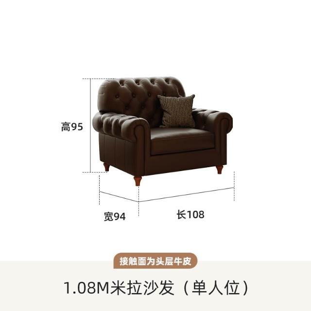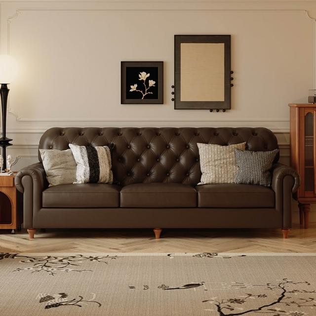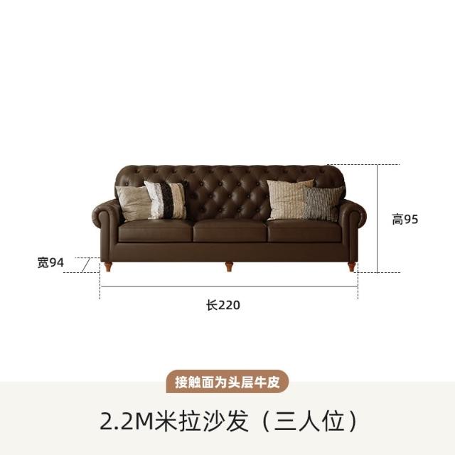 美式復古真皮沙發中古風法式頭層牛皮沙發客廳直排小戶型沙發傢俱