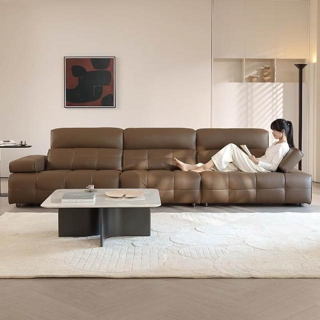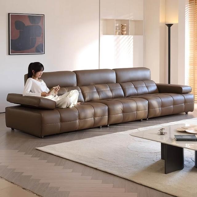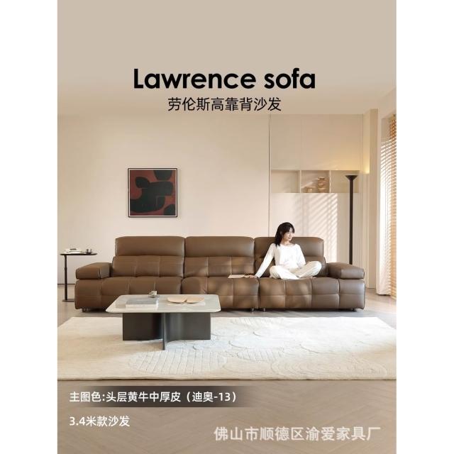 可調節勞倫斯真皮沙發意式極簡頭層牛皮客廳直排小戶型簡約皮沙發