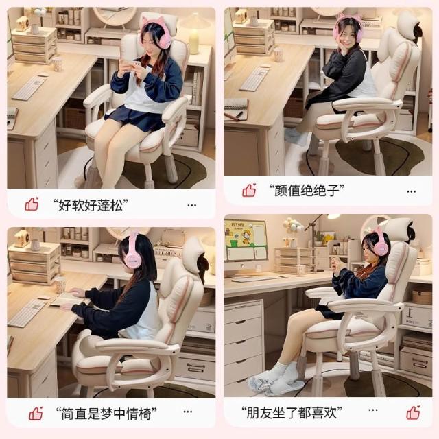 可升降無滾輪電競椅 家用宿舍學習電腦椅 辦公室午休可躺舒適辦公椅