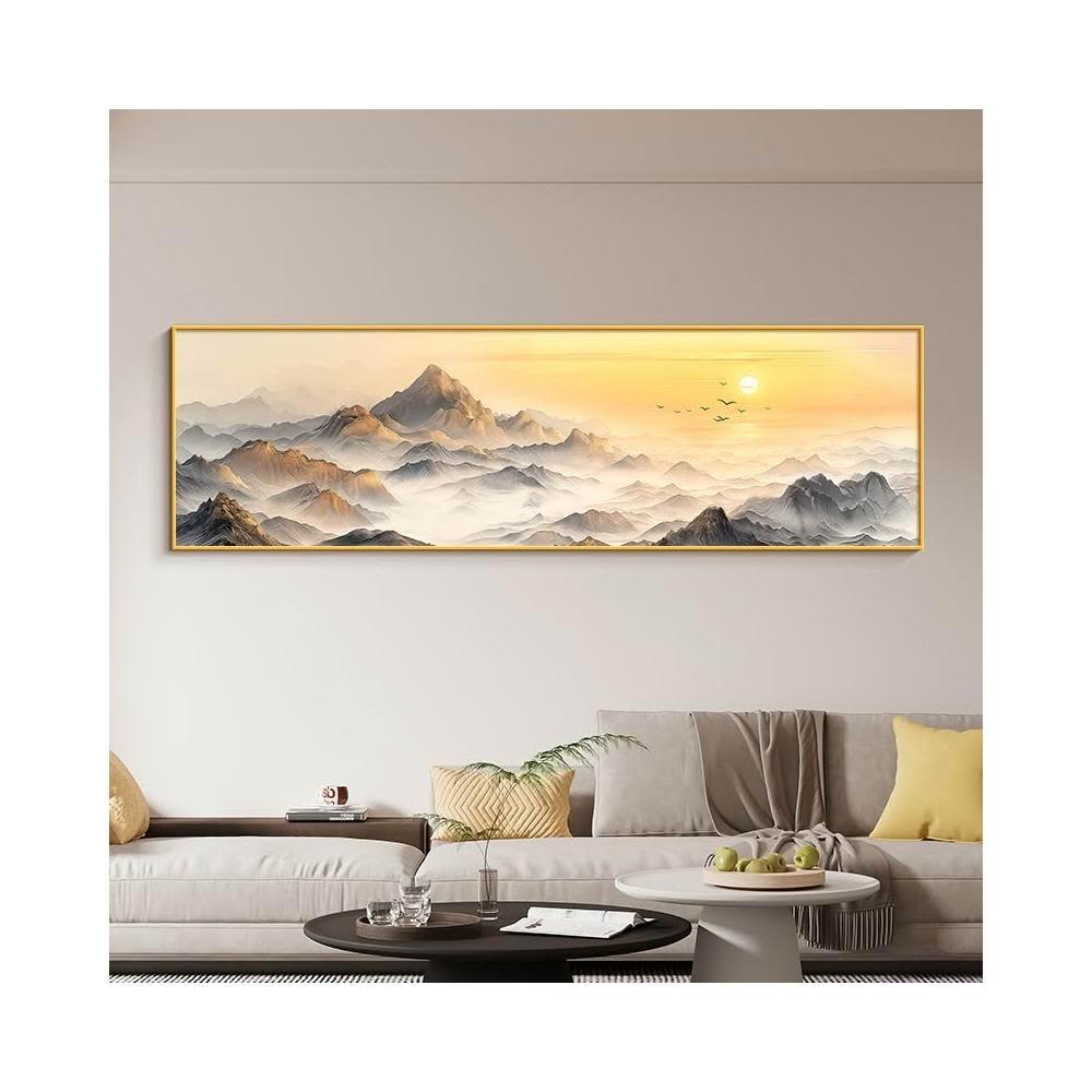 日照金山畫 靠山圖 客廳沙發背景牆掛畫 油畫 辦公室裝飾畫 旭日東昇山水畫 晶瓷畫 紋理油佈畫 非標尺寸尺寸畫