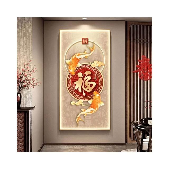 錦鯉玄關裝飾畫入戶正對門寓意福字壁畫高級感走廊過道燈光畫掛畫