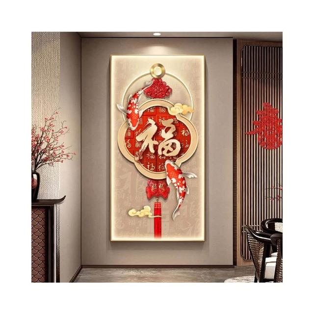 錦鯉玄關裝飾畫入戶正對門寓意福字壁畫高級感走廊過道燈光畫掛畫