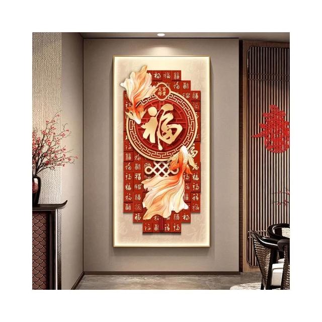 錦鯉玄關裝飾畫入戶正對門寓意福字壁畫高級感走廊過道燈光畫掛畫