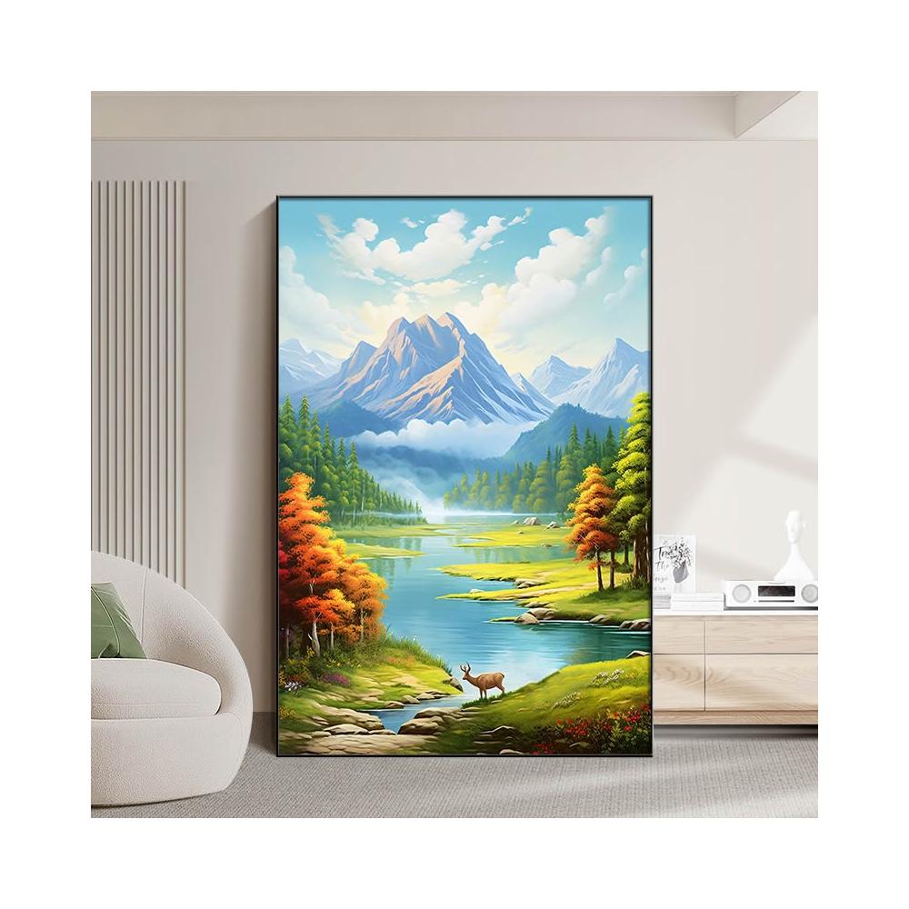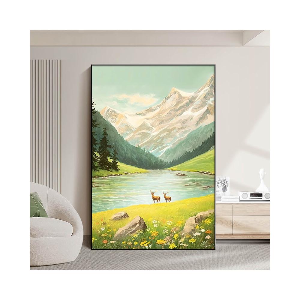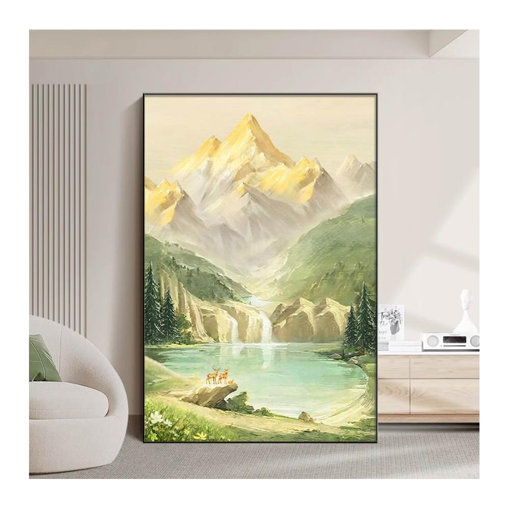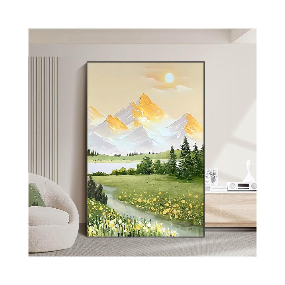 免運 日照金山裝飾畫 客廳落地畫 山水風景掛畫 沙發背景牆掛畫 高級感玄關壁畫