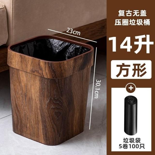 店鋪熱銷 復古仿木紋垃圾桶家用廚房廁所衛生間創意客廳臥室辦公室大號輕奢