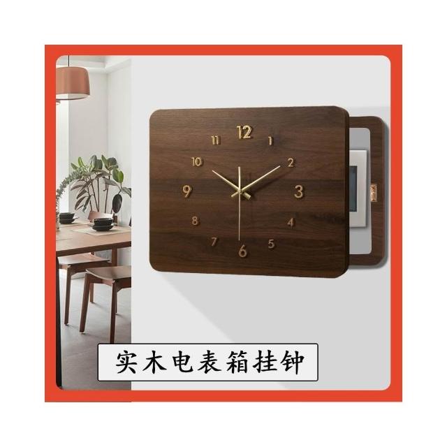 免運 電錶箱裝飾畫帶鐘錶實木遮擋時鐘免打孔遮醜配電箱簡約胡桃木掛
