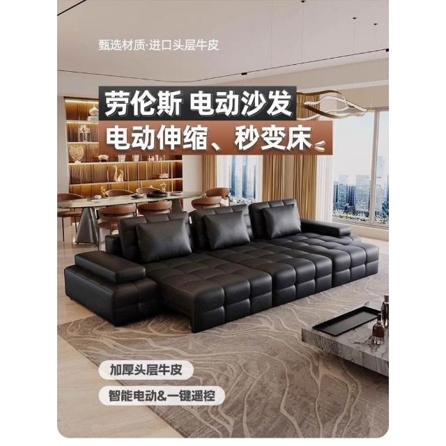 德致勞倫斯電動真皮沙發遙控功能客廳直排三四人位沙發床一體兩用