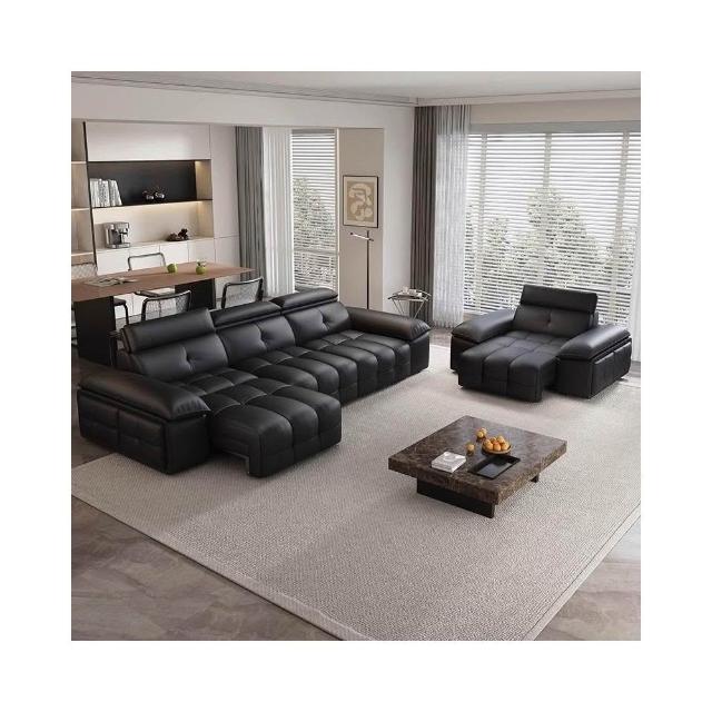限時折扣 勞倫斯真皮電動沙發 直排沙發 客廳零靠牆沙發 意式極簡真皮 頭層牛皮沙發 沙發床 三人沙發可躺可睡可調節伸縮