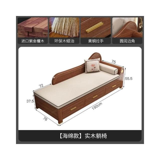 新中式實木單獨貴妃榻 太妃椅 老人貴妃椅 美人榻 客廳小戶型儲物躺椅 懶人躺椅 沙發床 小沙發