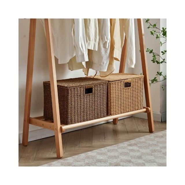 日式編織收納箱 仿藤編帶蓋收納籃 家用整理編織收納筐 翻蓋儲物收納盒 家用衣物收納箱 零食玩具收納箱