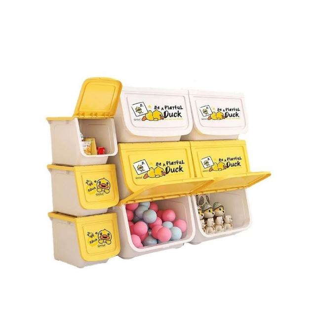 小黃鴨玩具收納箱 前開式家用翻蓋儲物箱 衣服整理箱 零食收納盒 帶輪儲物箱