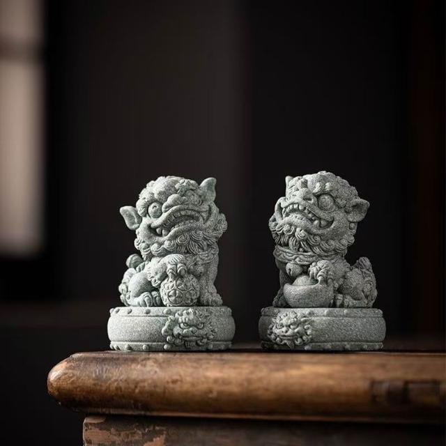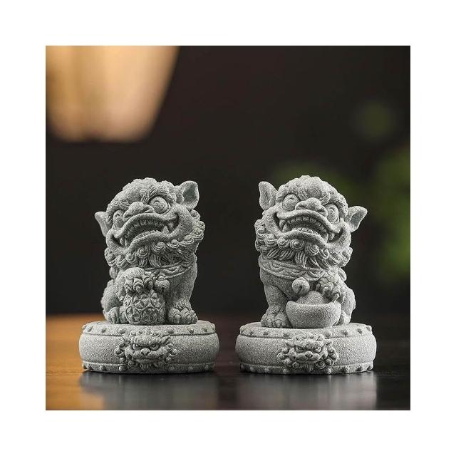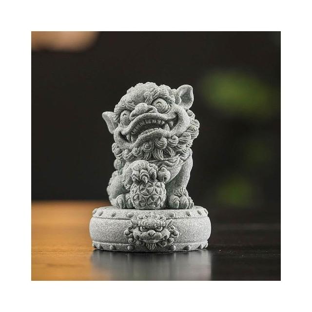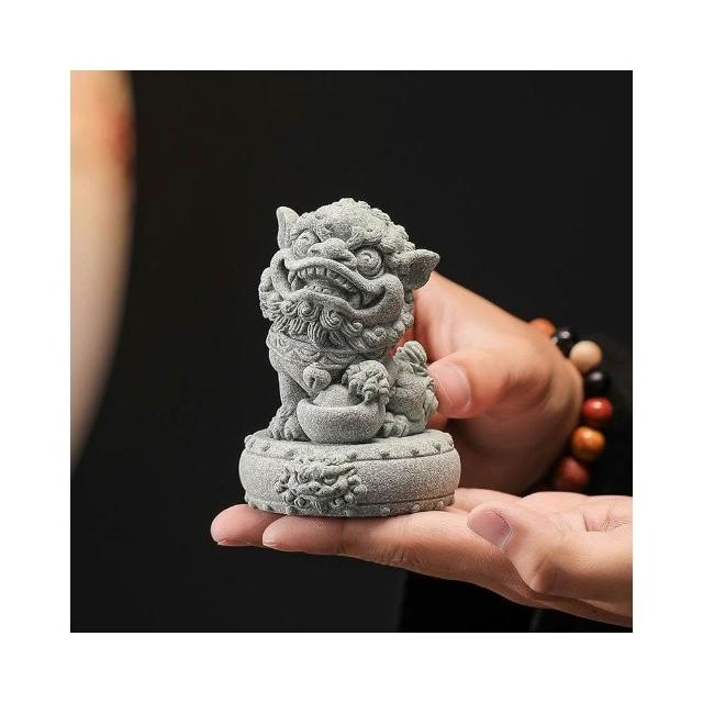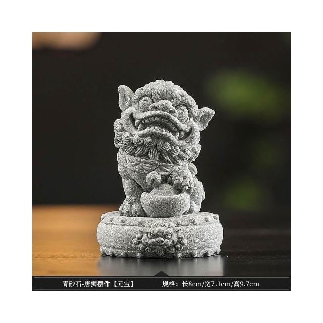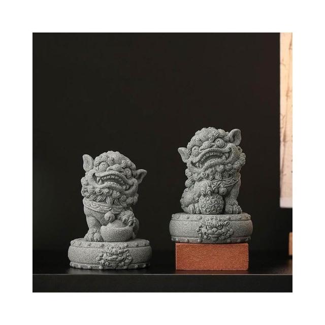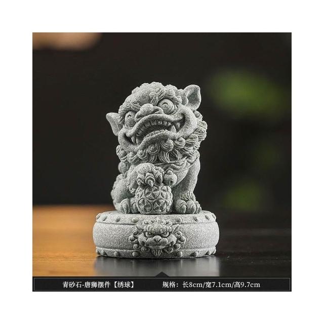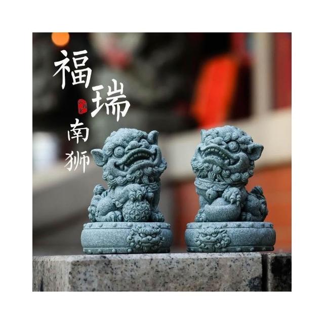 青砂石招財小獅子 招財進寶 鎮宅 一對擺件 國風醒獅 魚缸造景 桌面茶寵