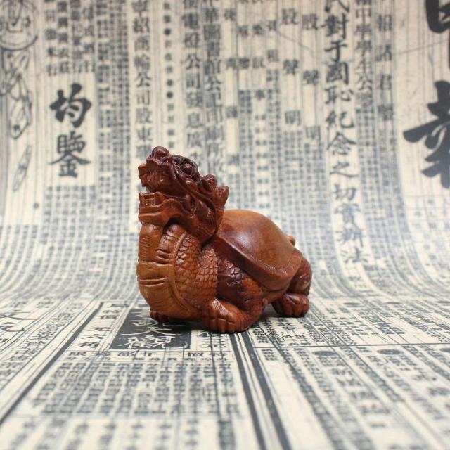 雷擊棗木龍龜手把件 擺件 木雕擺件 手工藝品 精雕 深色老料 老式擺件 書房裝飾