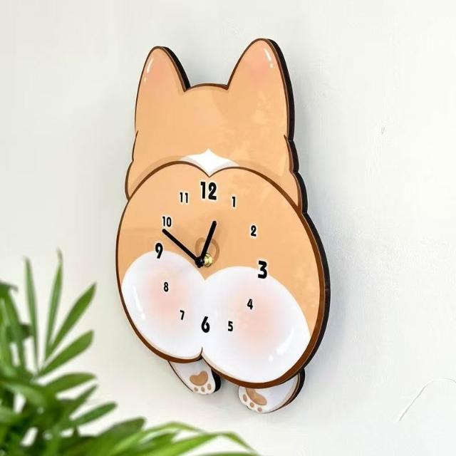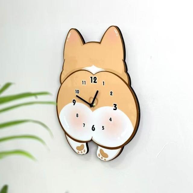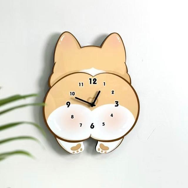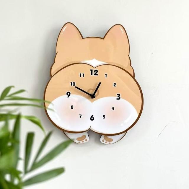 ♥️免運 時鐘 掛鐘 可愛柯基創意搖擺鐘 小狗鐘錶 客餐廳臥室裝飾時鐘 可愛靜音掛墻掛鐘