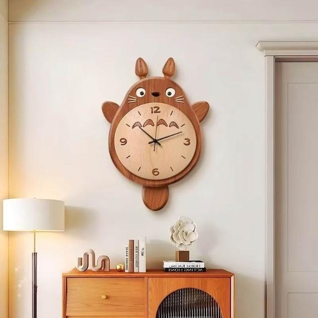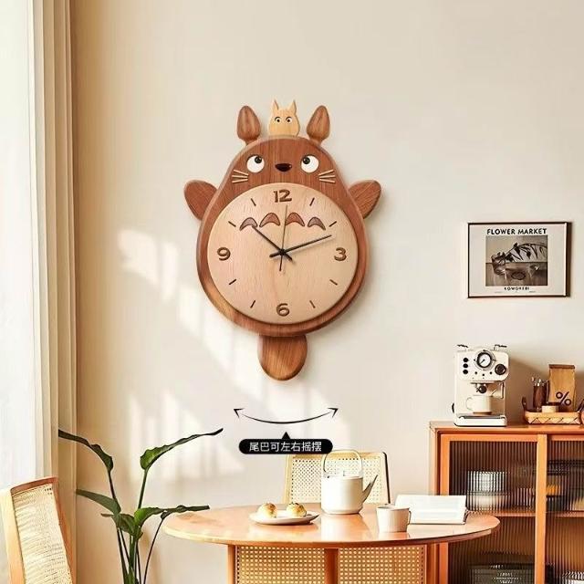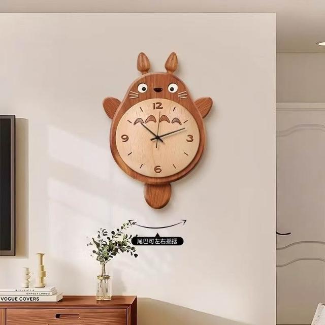 新品下殺🔥 ✔最新款龍貓掛鐘 原木風時鐘 客廳創意鐘錶 卡通龍貓裝飾鐘 靜音掛墻鐘錶 吊鐘 尾巴搖擺時鐘