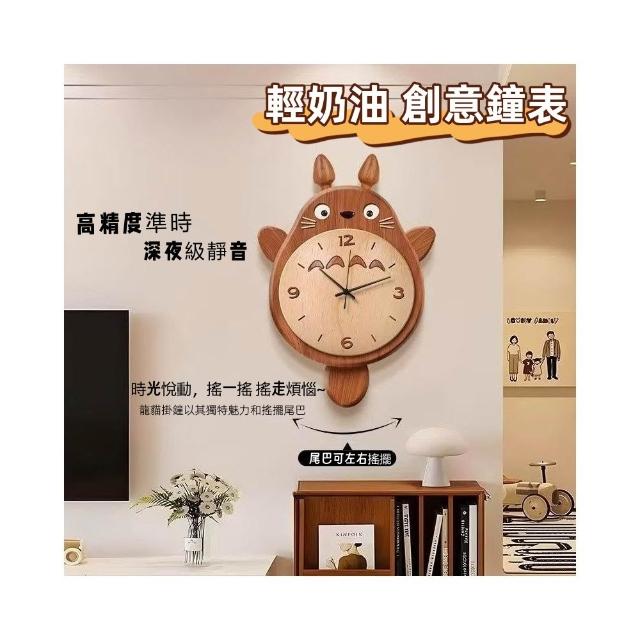 新品下殺🔥 ✔最新款龍貓掛鐘 原木風時鐘 客廳創意鐘錶 卡通龍貓裝飾鐘 靜音掛墻鐘錶 吊鐘 尾巴搖擺時鐘