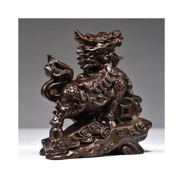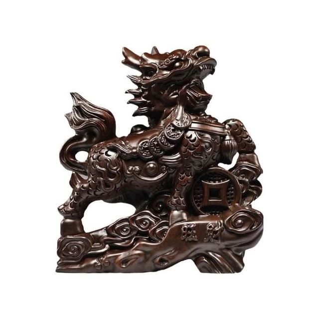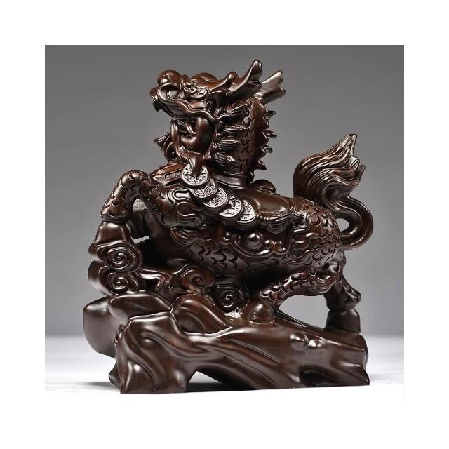 黑檀實木麒麟擺件 一對木質麒麟 麒麟雕刻 客廳玄關擺設裝飾 開業工藝禮品