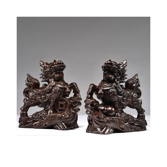 黑檀實木麒麟擺件 一對木質麒麟 麒麟雕刻 客廳玄關擺設裝飾 開業工藝禮品