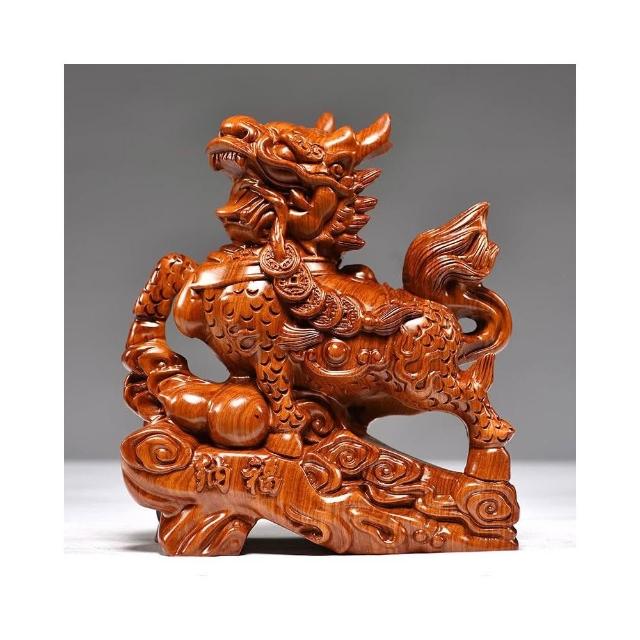 黑檀實木麒麟擺件 一對木質麒麟 麒麟雕刻 客廳玄關擺設裝飾 開業工藝禮品