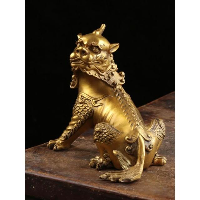 純黃銅諦聽擺件 地藏王坐騎 獨角神獸 銅貔貅 地聽 客廳手工擺件
