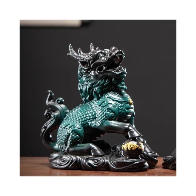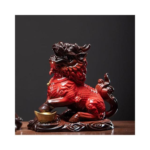 麒麟 高端陶瓷擺件 一對招財風水鎮宅神獸 客廳辦公室大號麒麟瓷器 開業送禮品