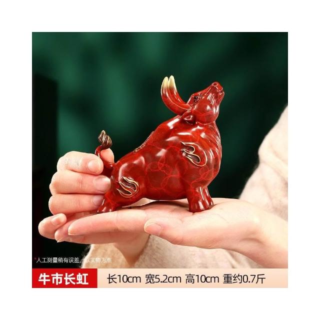 彩銅牛擺件 家居辦公室牛擺飾 桌面擺件 陶瓷紅色牛氣沖天 工藝品 迷你小擺設 博古架擺件 送人禮品