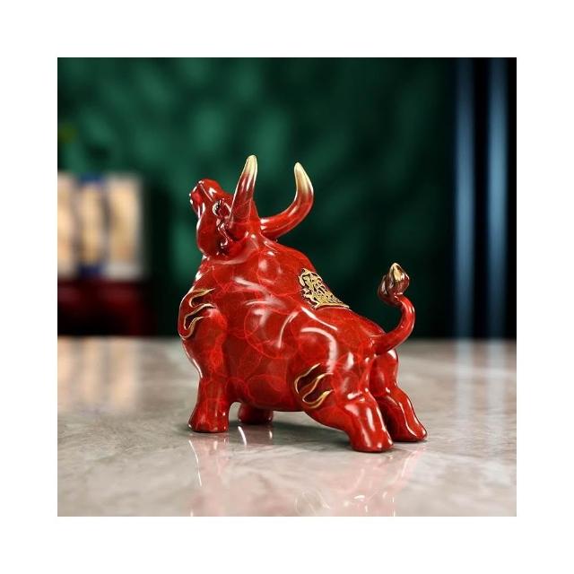 彩銅牛擺件 家居辦公室牛擺飾 桌面擺件 陶瓷紅色牛氣沖天 工藝品 迷你小擺設 博古架擺件 送人禮品