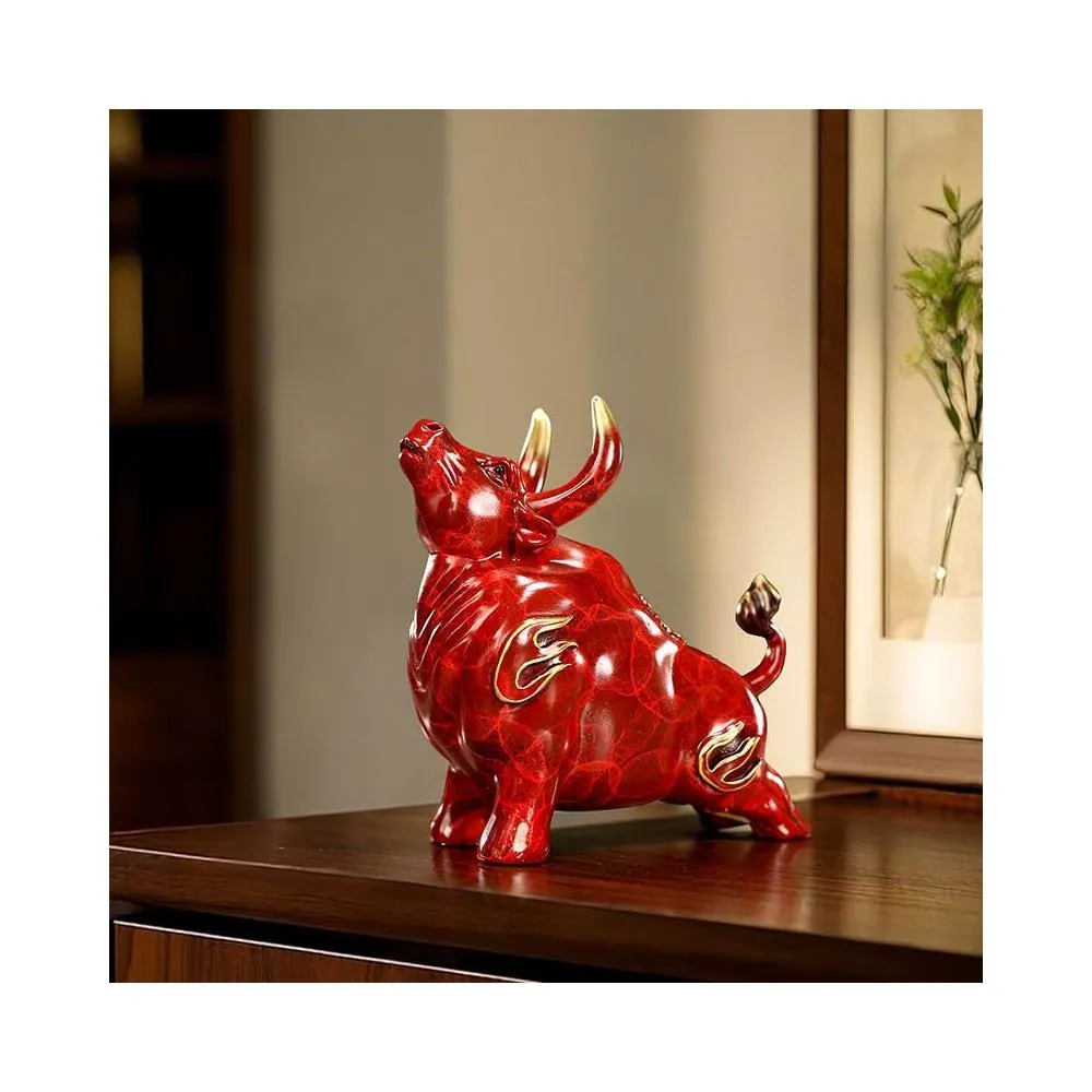 彩銅牛擺件 家居辦公室牛擺飾 桌面擺件 陶瓷紅色牛氣沖天 工藝品 迷你小擺設 博古架擺件 送人禮品