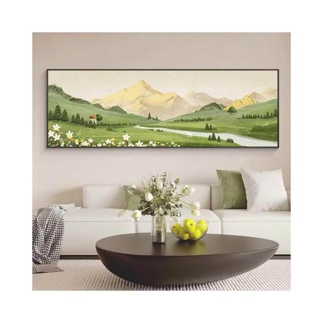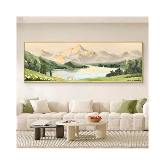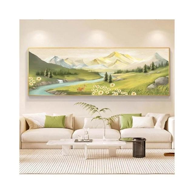 ✔簡易安裝 日照金山客廳裝飾畫 山水風景畫 高級感晶瓷畫 沙發背景墻壁畫 原木風客廳掛畫 奶油風家用裝飾畫 客廳掛畫