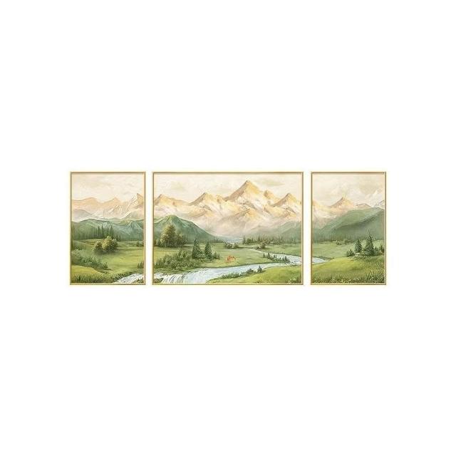 ♥️免運♥️ 奶油風日照金山晶瓷畫 客廳裝飾畫 新款沙發背景墻掛畫 北歐山水風景壁畫 三聯壁畫 客廳掛畫