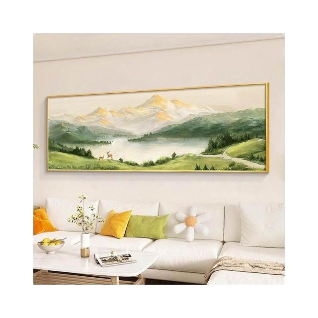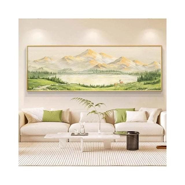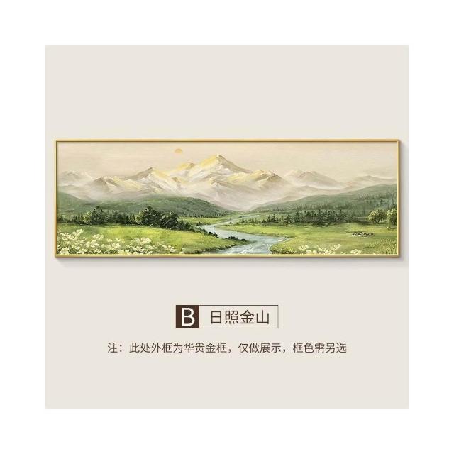 免運✈️ ⚡爆款日照金山壁畫 客廳裝飾畫 橫幅山水風景油畫 沙發背景牆掛畫 現代簡約高級感壁畫 晶瓷畫 奶油風原木風掛畫