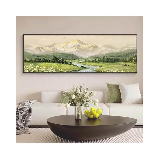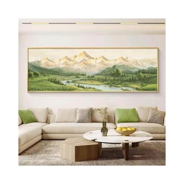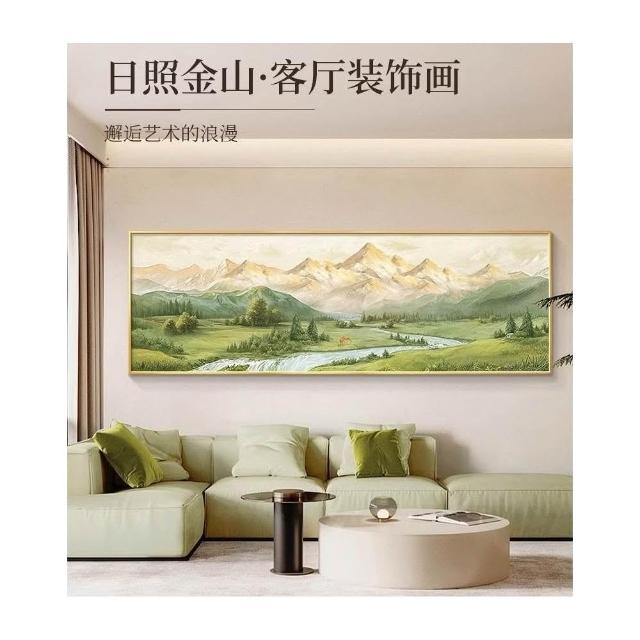 免運✈️ ⚡爆款日照金山壁畫 客廳裝飾畫 橫幅山水風景油畫 沙發背景牆掛畫 現代簡約高級感壁畫 晶瓷畫 奶油風原木風掛畫