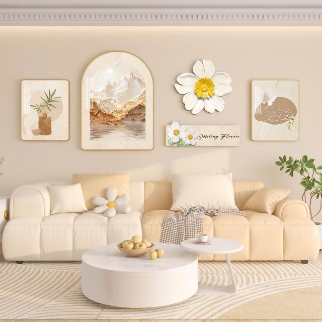 奶油風客廳掛畫北歐沙發背景墻裝飾畫高級感大氣花卉綠植壁畫組合