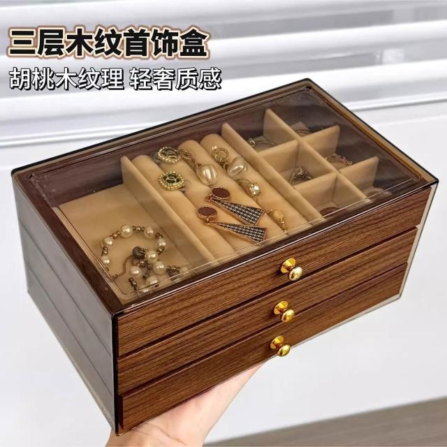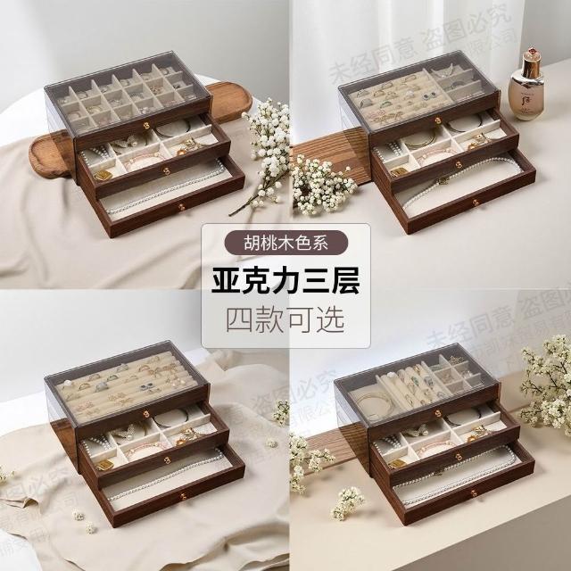 新品下殺 胡桃木首飾盒 高級感 耳釘手镯飾品盒 桌面收納盒 輕奢耳環戒指手飾盒 珠寶收納