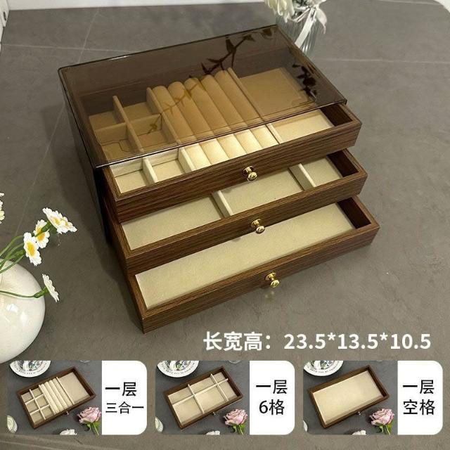 新品下殺 胡桃木首飾盒 高級感 耳釘手镯飾品盒 桌面收納盒 輕奢耳環戒指手飾盒 珠寶收納