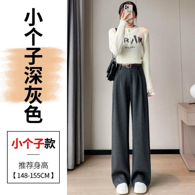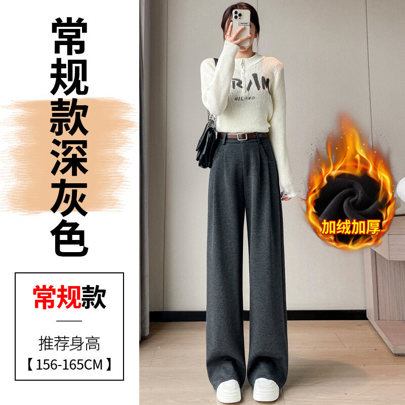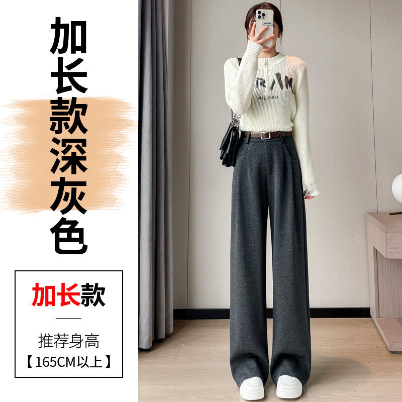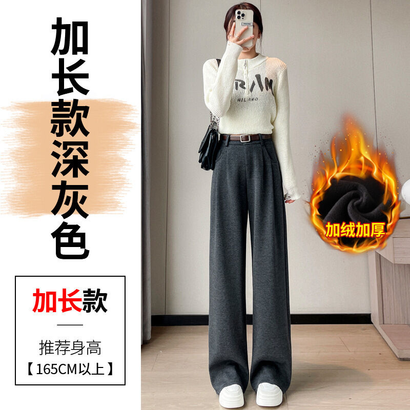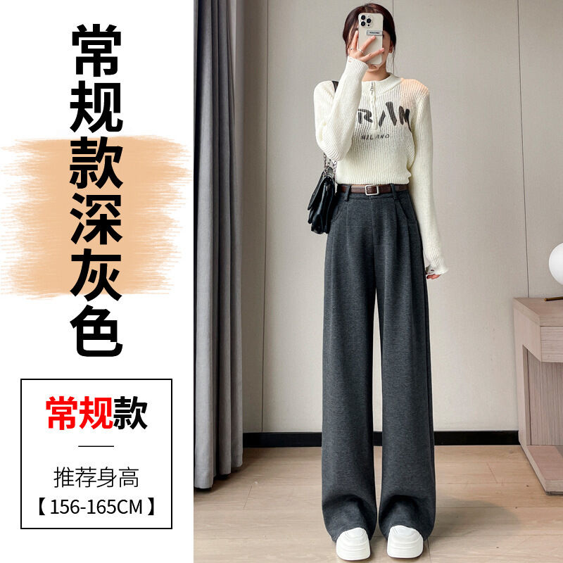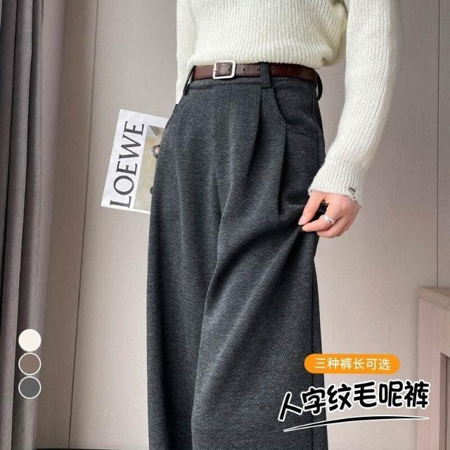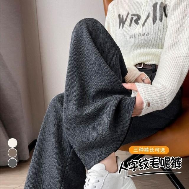 深灰色加絨毛呢直筒褲女2025秋冬人字紋高級感窄版直筒闊腿褲7705