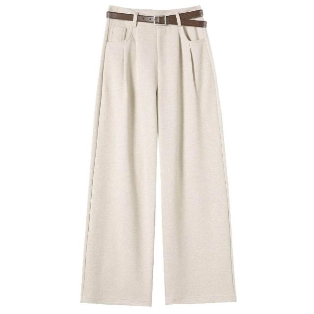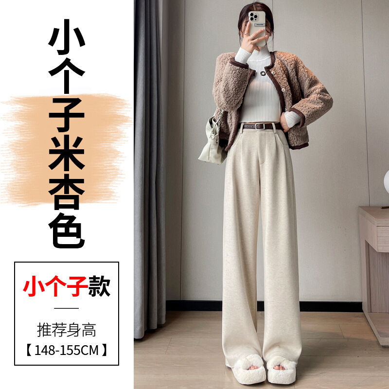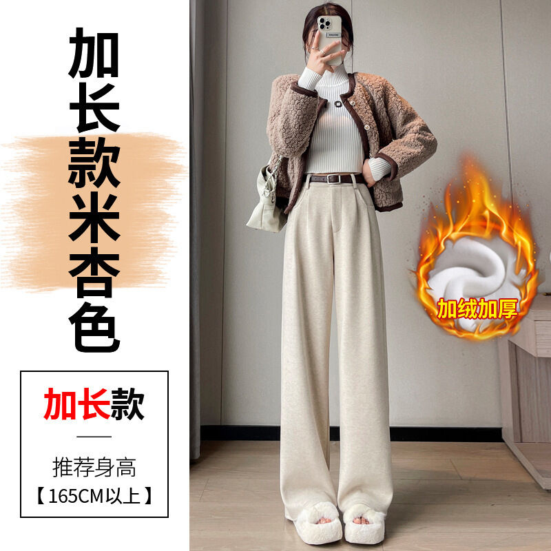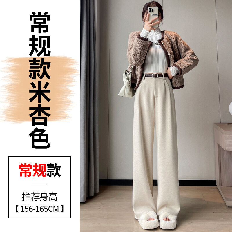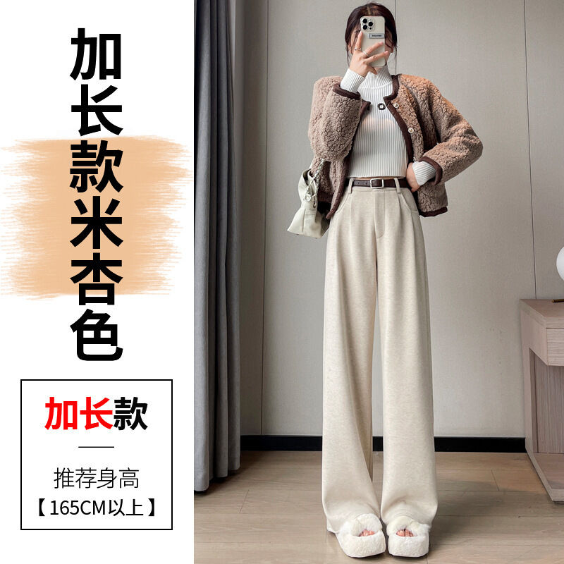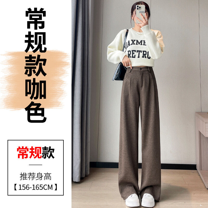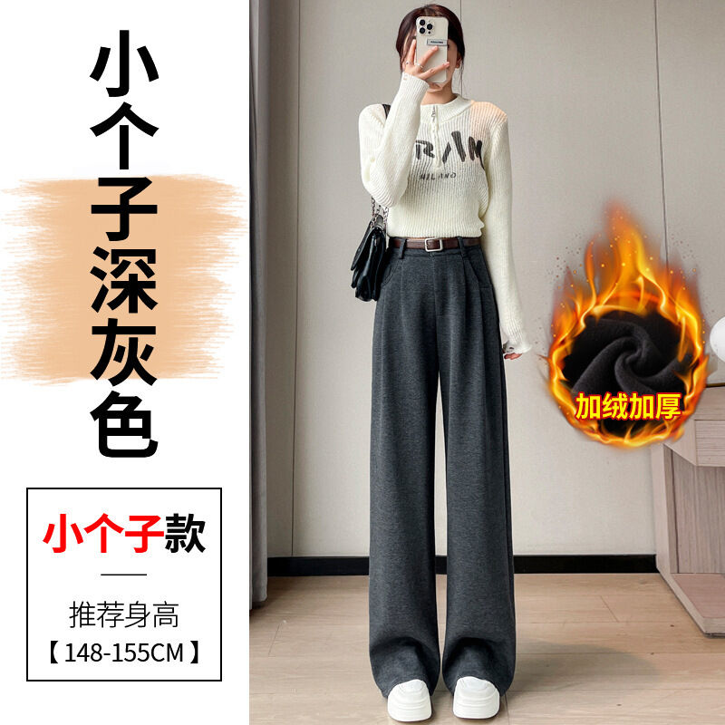 深灰色加絨毛呢直筒褲女2025秋冬人字紋高級感窄版直筒闊腿褲7705