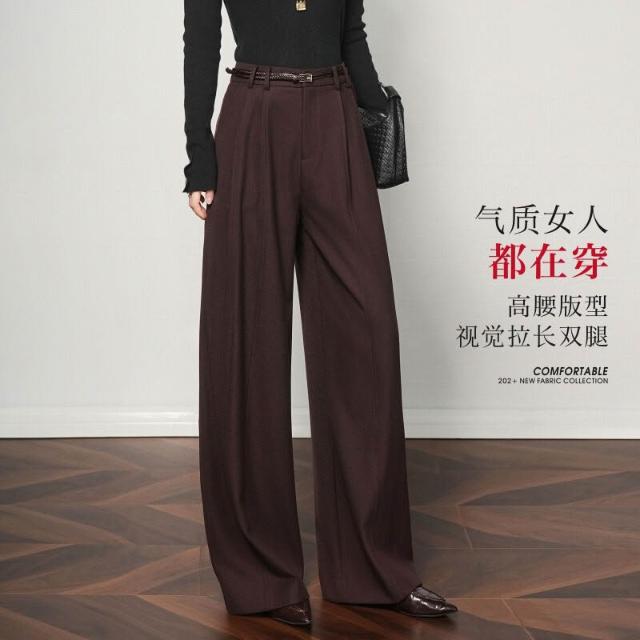 天絲羊毛灰色闊腿褲女2025新款高腰垂墜感寬松休閑窄版直筒西裝褲