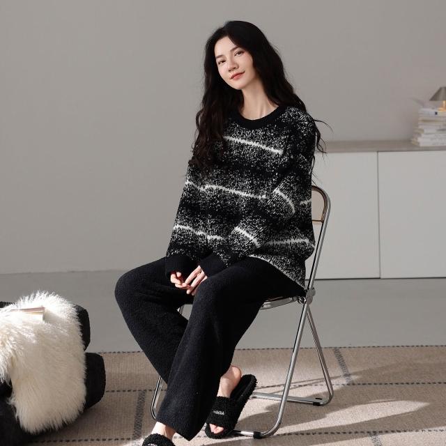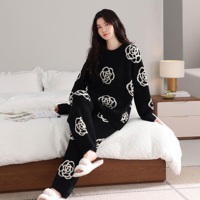 暖巢 秋冬半邊絨慵懶風睡衣女冬季2025新款高級感保暖珊瑚絨家居服套裝 舒適睡衣