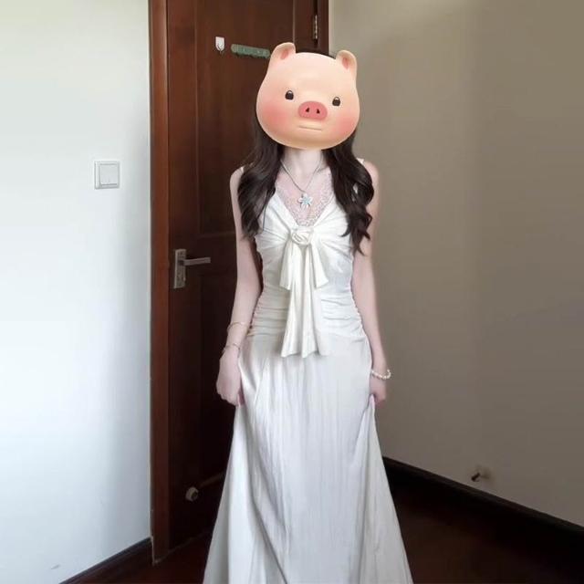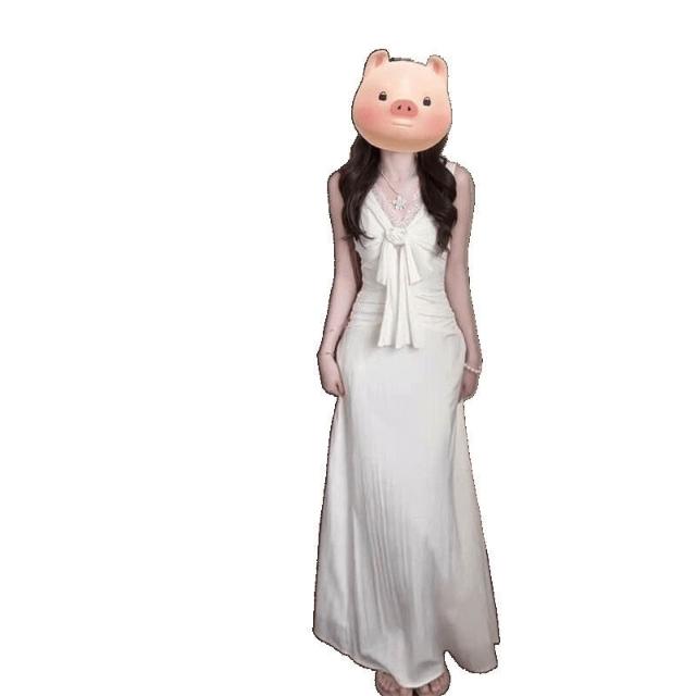 暖巢 純欲溫柔V領法式無袖連衣裙女夏白色修身a字長裙設計感小眾裙子 連衣裙 全身裙