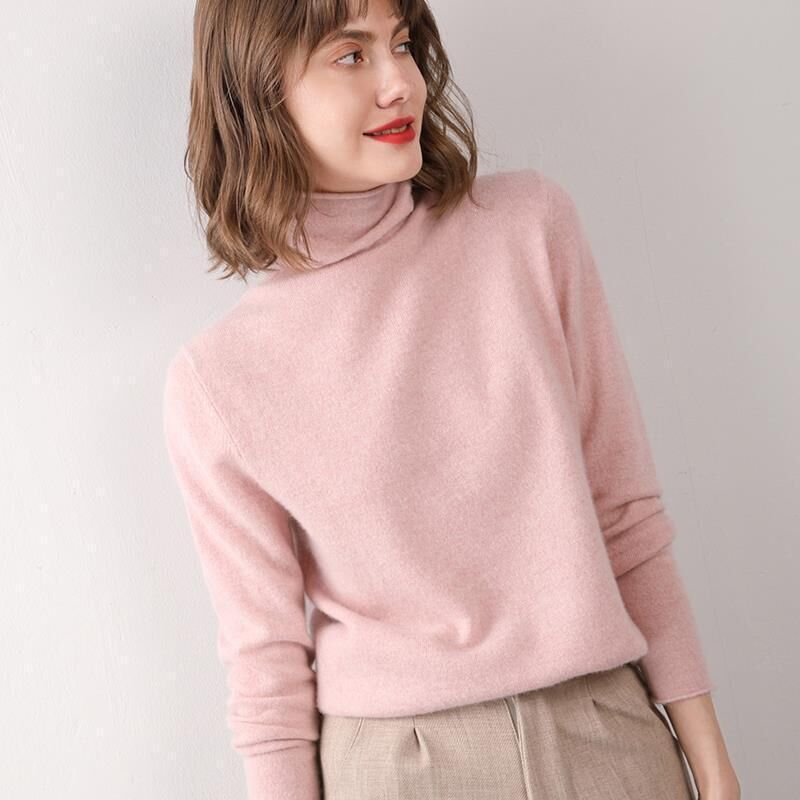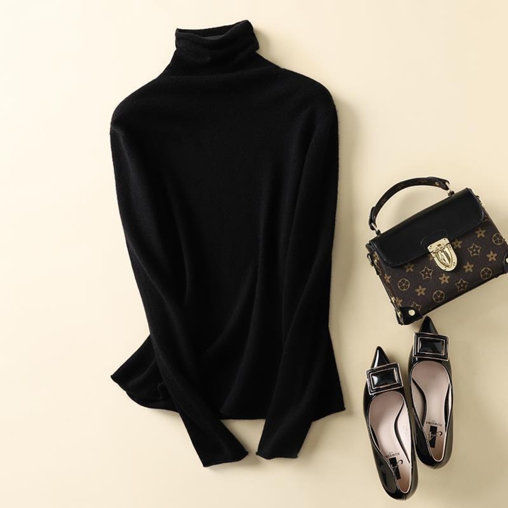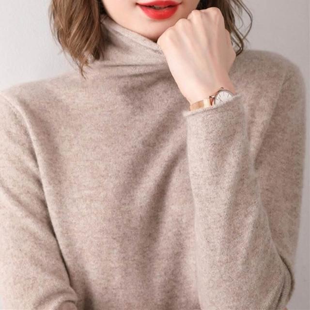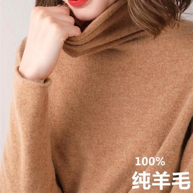 堆堆領羊毛衫女100 純羊毛秋冬高領洋氣內搭薄款針織打底羊絨毛衣 上衣 內搭