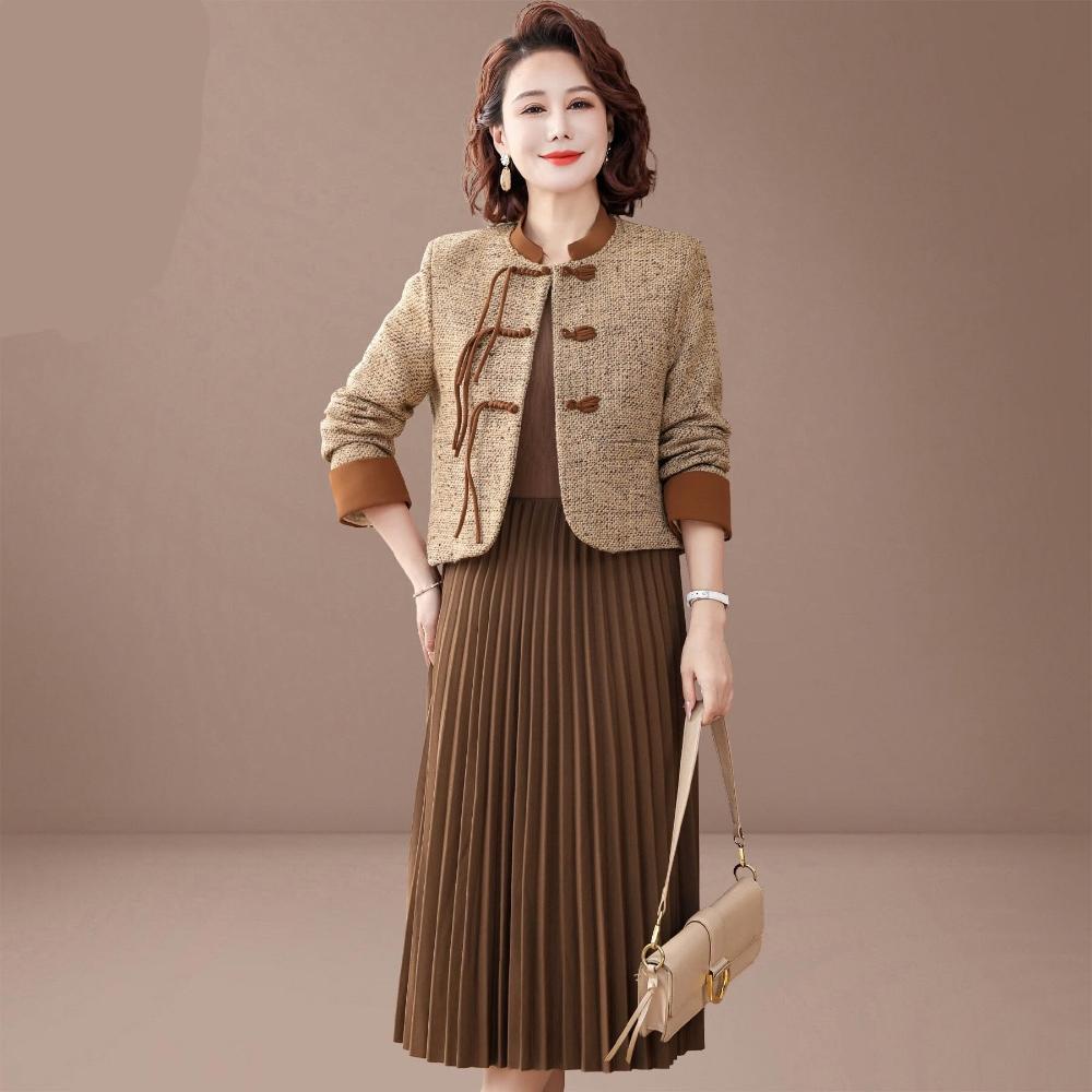 套裙 裙子 上衣 新中式媽媽春裝連衣裙兩件套新款貴夫人中老年女春秋國風套裙